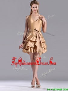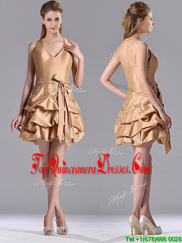 Most Popular Halter Top Champagne Dama Dress with Bubbles and Bowknot