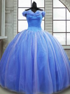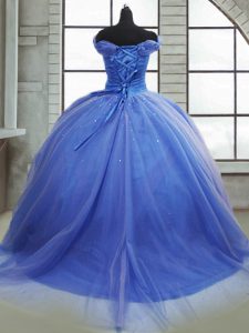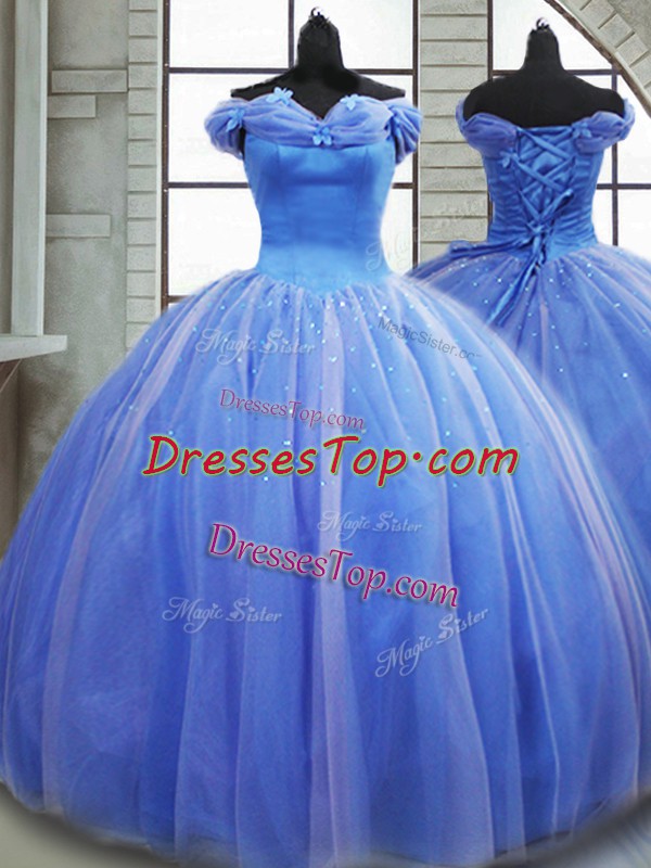 Most Popular Light Blue Lace Up Sweet 16 Dress Pick Ups Sleeveless Brush Train