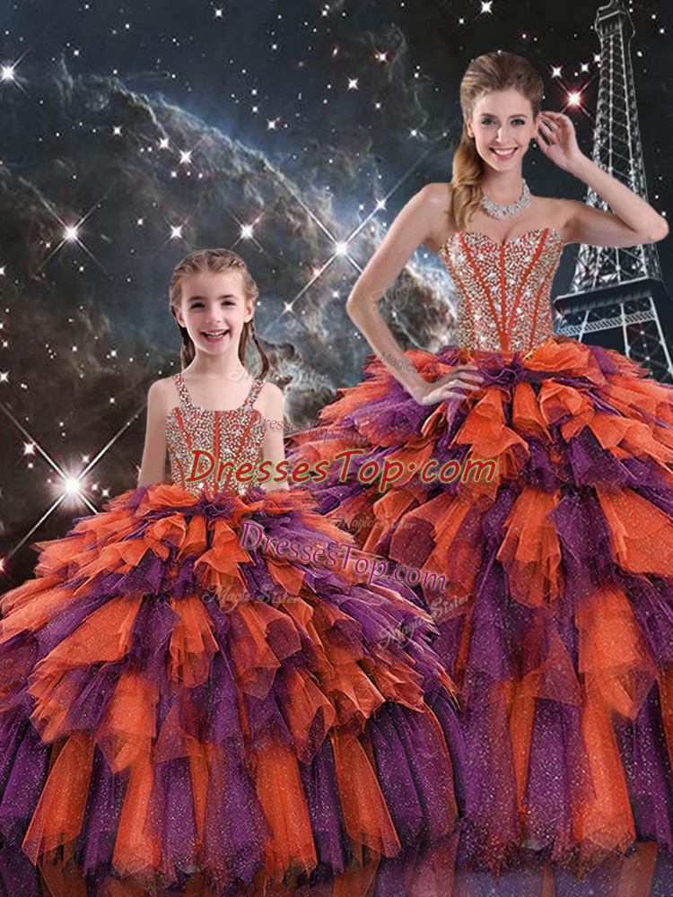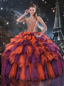 Most Popular Multi-color Ball Gowns Beading and Ruffles and Ruffled Layers 15th Birthday Dress Lace Up Organza Sleeveless Floor Length