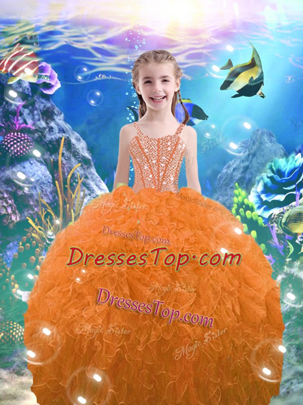 Most Popular Orange Red Lace Up Kids Formal Wear Beading and Ruffles Sleeveless Floor Length