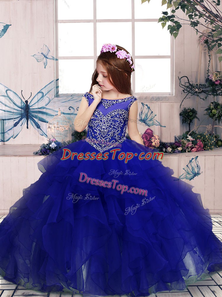 Most Popular Organza Sleeveless Floor Length Kids Formal Wear and Beading and Ruffles