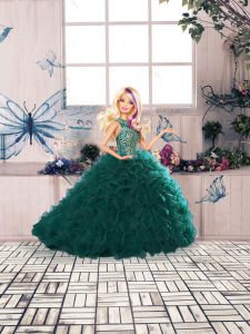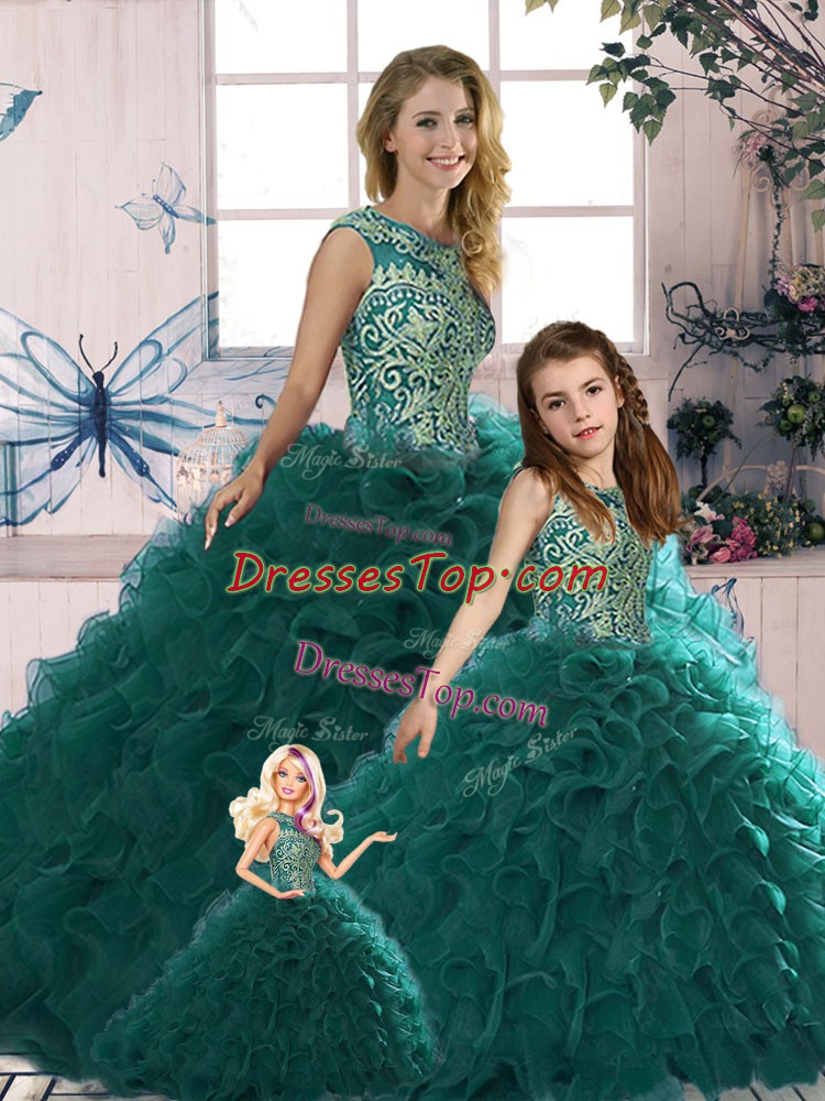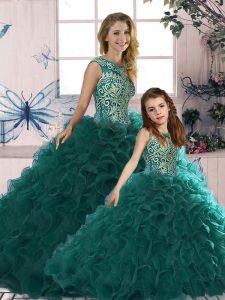 Most Popular Peacock Green Scoop Neckline Beading and Ruffles Sweet 16 Dresses Sleeveless Lace Up