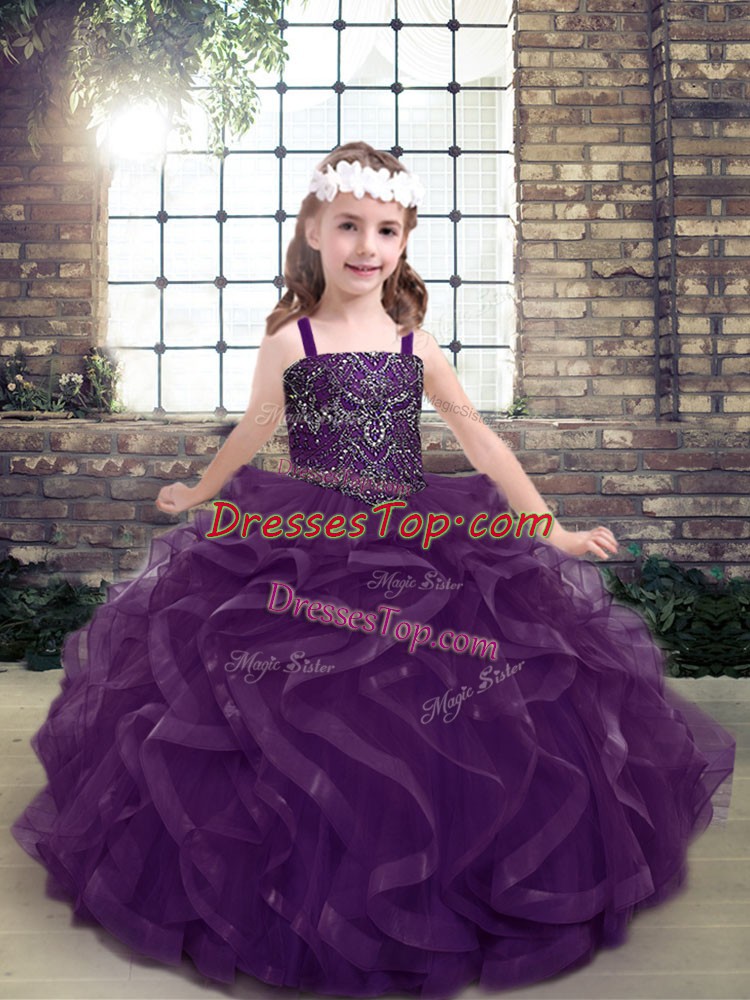 Most Popular Purple Lace Up Pageant Dress for Teens Beading and Ruffles Sleeveless Floor Length