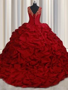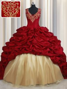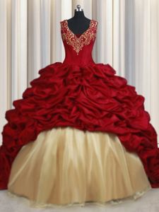 Most Popular Red Lace Up Quinceanera Dresses Beading and Appliques and Pick Ups Sleeveless Sweep Train