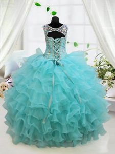 Most Popular Scoop Sleeveless Organza Little Girls Pageant Dress Wholesale Beading and Ruffled Layers Lace Up