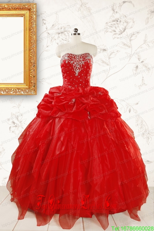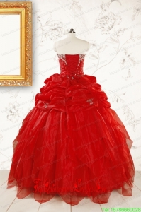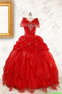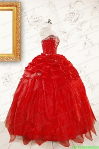 Most Popular Sweetheart Ball Gown Beading Red Quinceanera Dresses for 2015