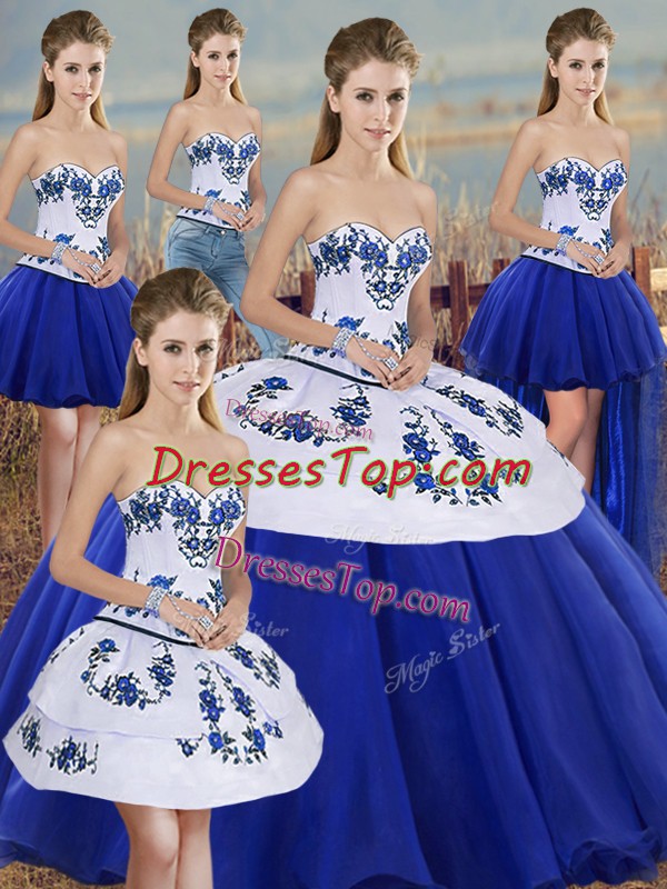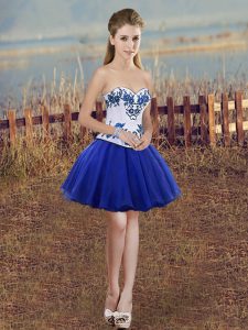 Most Popular Sweetheart Sleeveless Sweet 16 Dresses Floor Length Embroidery and Bowknot Royal Blue Tulle