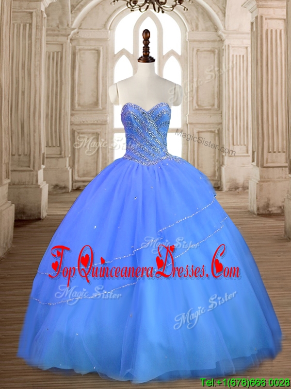 Most Popular Tulle Big Puffy Beaded Sweet 16 Dress in Blue