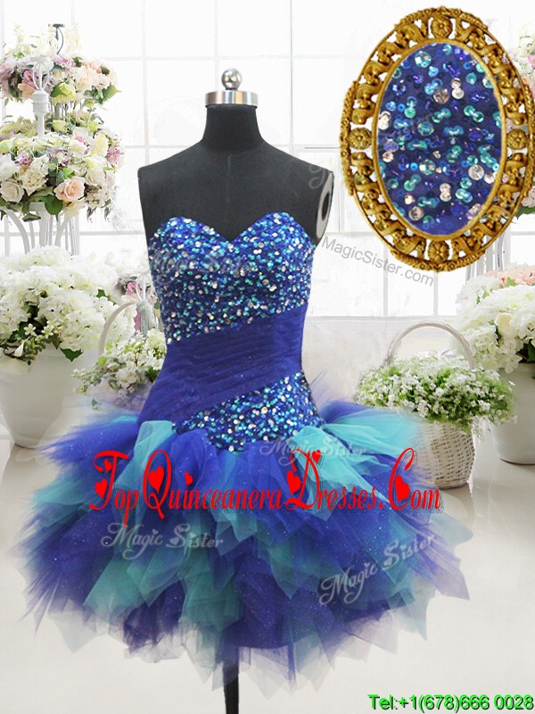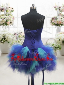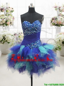 Most Popular Two Tone Sweetheart Short Dama Dress with Beading and Ruffles