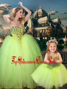 Most Popular Yellow Green Spaghetti Straps New Arrival Kid Pageant Dress with Beading