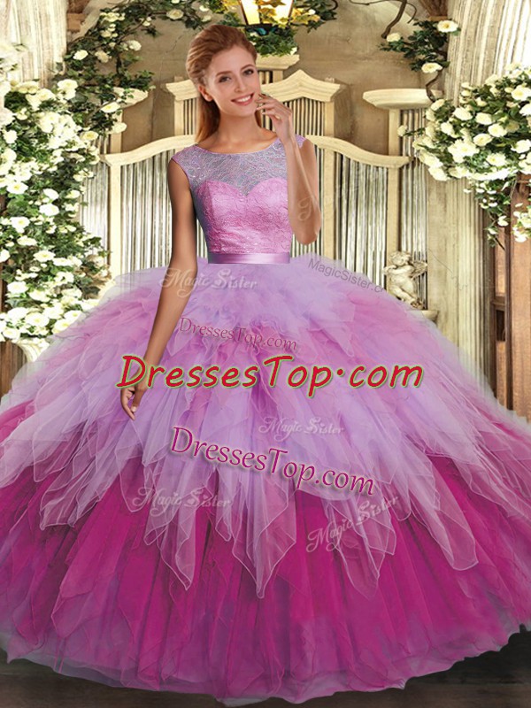 Multi-color Backless Ball Gown Prom Dress Beading and Ruffles Sleeveless Floor Length