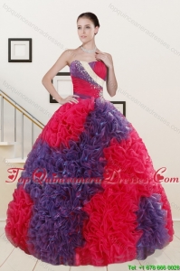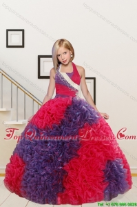 Multi Color Ball Gown Ruffles Quinceanera Dress and Ruching Baby Pink Dama Dresses and Halter Top Multi Color Little Girl Dress
