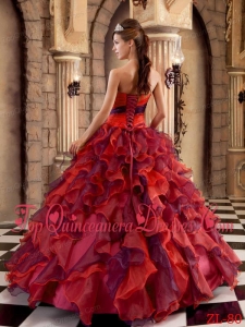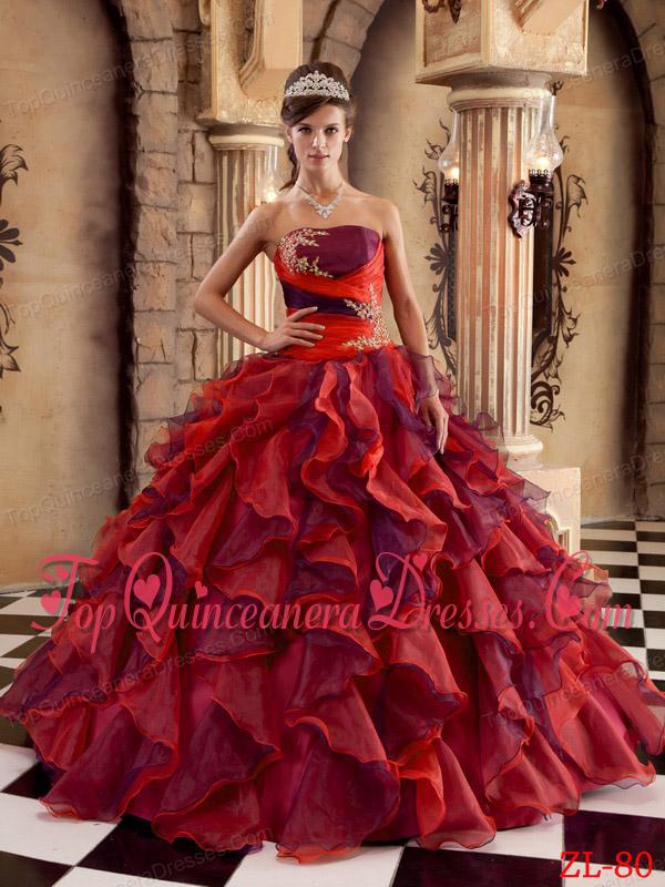 Multi-color Ball Gown Strapless Floor-length Organza Ruffles Perfect Quinceanera Dress