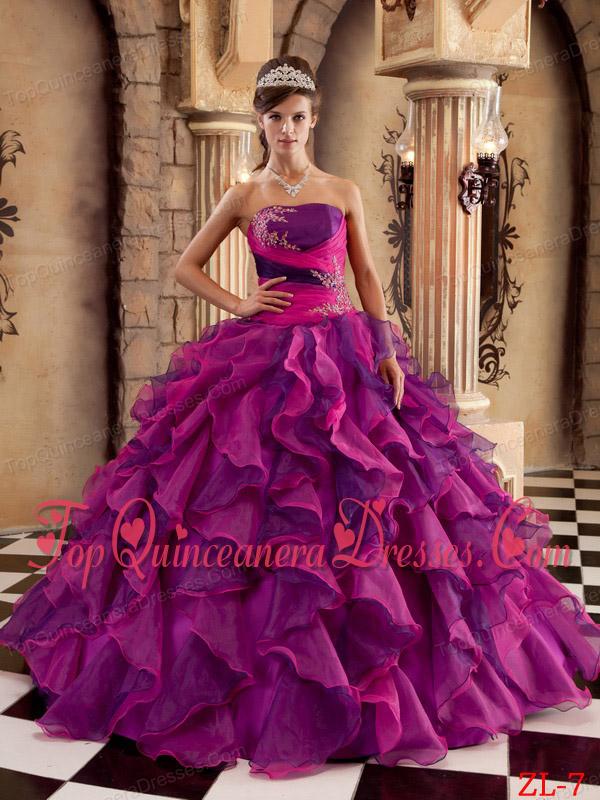Multi-color Ball Gown Strapless Floor-length Organza Ruffles Vestidos de Quinceanera