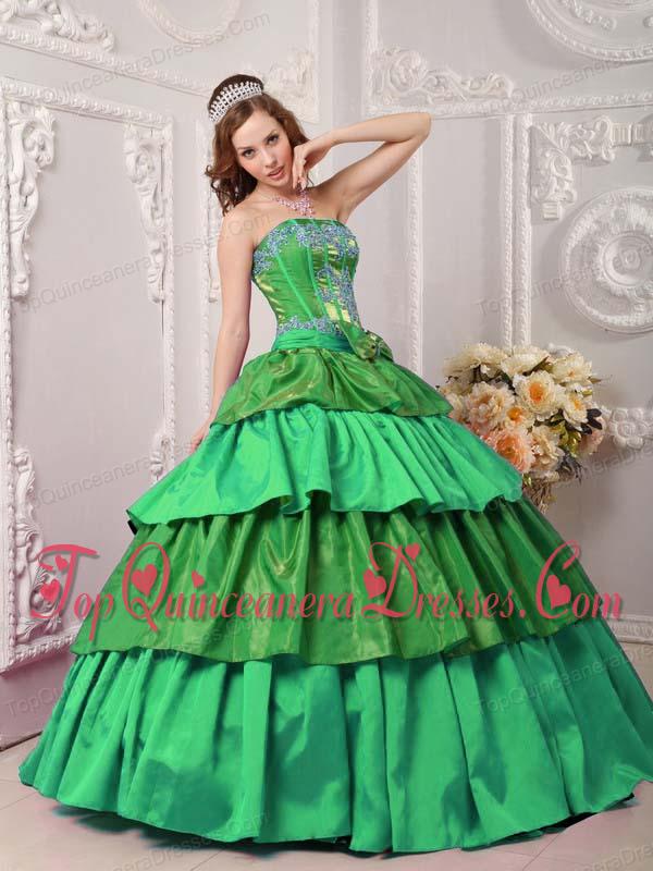 Multi-color Ball Gown Strapless Floor-length Taffeta Appliques Quinceanera Dress