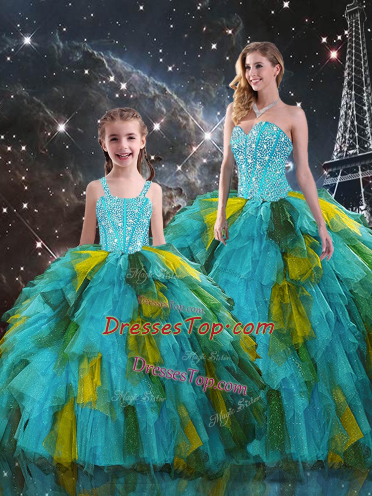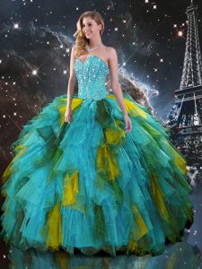 Multi-color Ball Gowns Beading and Ruffles Vestidos de Quinceanera Lace Up Organza Sleeveless Floor Length