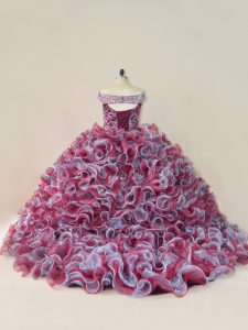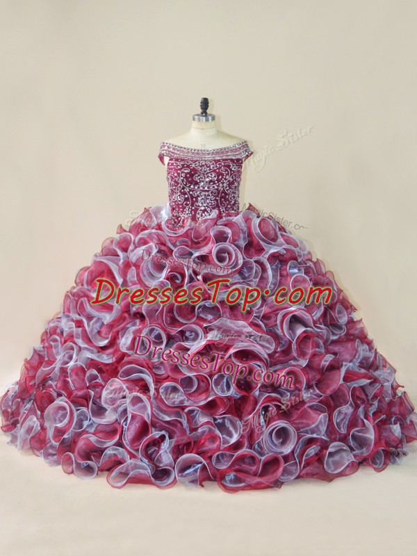 Multi-color Ball Gowns Beading and Ruffles Vestidos de Quinceanera Lace Up Organza Sleeveless