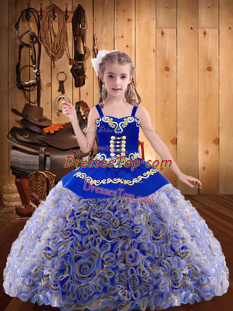 Multi-color Ball Gowns Embroidery and Ruffles Little Girls Pageant Dress Lace Up Fabric With Rolling Flowers Sleeveless Floor Length