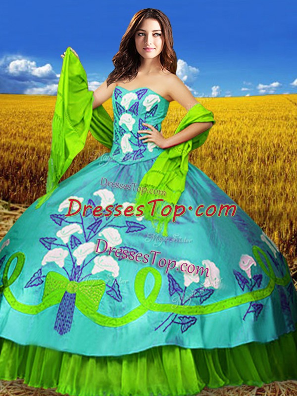 Multi-color Ball Gowns Embroidery Quince Ball Gowns Lace Up Taffeta Sleeveless Floor Length