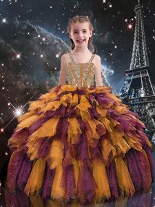 Multi-color Ball Gowns Organza Sweetheart Sleeveless Beading and Ruffles and Ruffled Layers Floor Length Lace Up Sweet 16 Quinceanera Dress