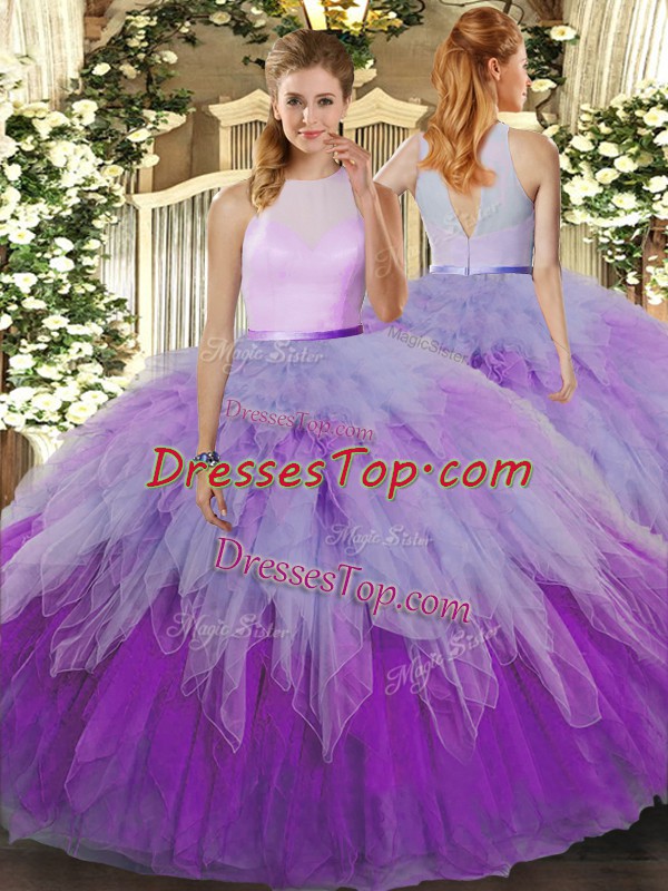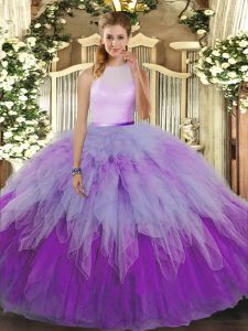 Multi-color Ball Gowns Ruffles 15 Quinceanera Dress Zipper Organza Sleeveless Floor Length