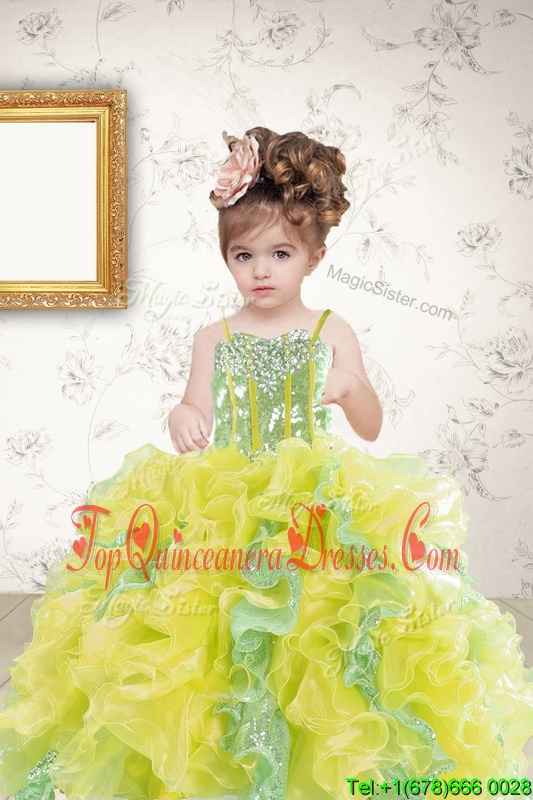 Multi-color Ball Gowns Spaghetti Straps Sleeveless Organza Floor Length Lace Up Beading and Ruffles and Sequins Little Girl Pageant Dress