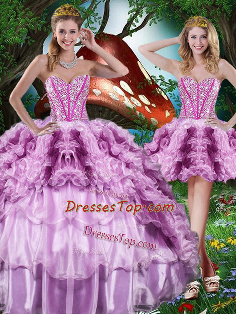 Multi-color Ball Gowns Sweetheart Sleeveless Organza Floor Length Lace Up Beading and Ruffles and Ruffled Layers Quinceanera Gown