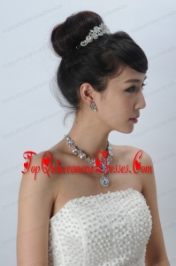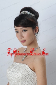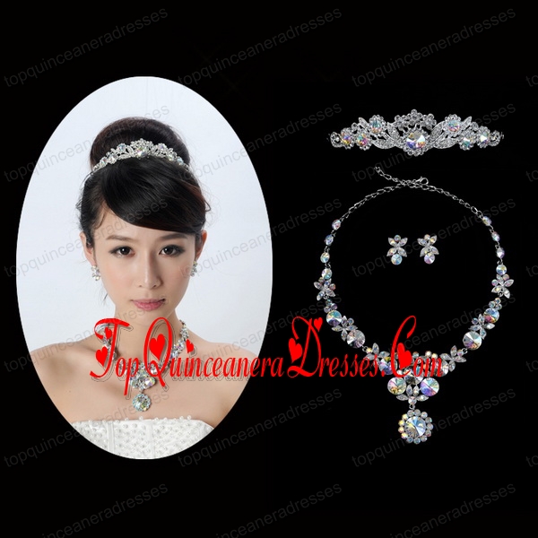 Multi Color Crystal Round Shaped Jewelry Set Including Necklace Tiara