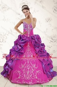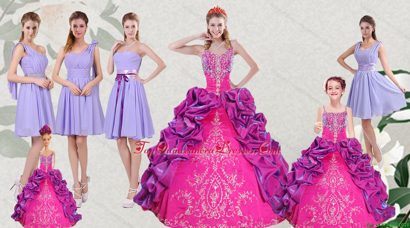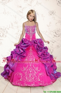Multi Color Embroidery and Bubbles Quinceanera Dress and Ruching Short Dama Dresses and Spaghetti Straps Bubbles Little Girl Dress