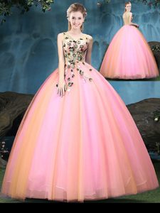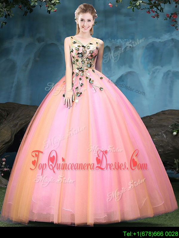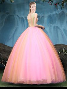 Multi-color Lace Up Ball Gown Prom Dress Appliques Sleeveless Floor Length