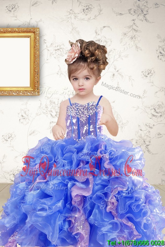 Multi-color Lace Up Pageant Dress Beading and Ruffles and Sequins Sleeveless Floor Length