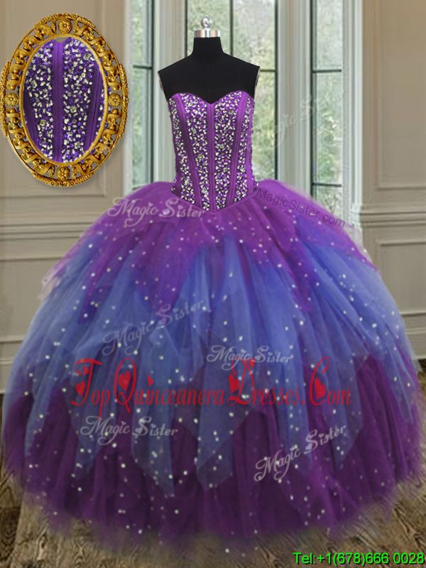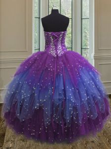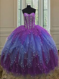Multi-color Lace Up Quinceanera Gowns Beading and Ruffles and Sequins Sleeveless Floor Length