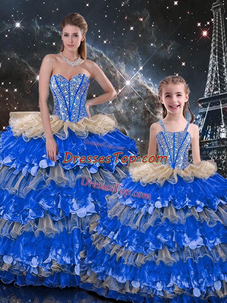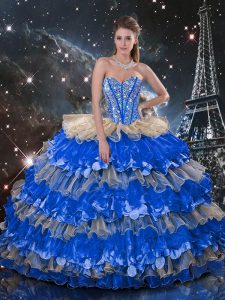 Multi-color Lace Up Sweetheart Beading and Ruffles Sweet 16 Dresses Organza Sleeveless