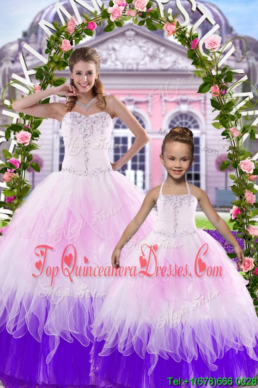 Multi-color Lace Up Sweetheart Beading Ball Gown Prom Dress Tulle Sleeveless