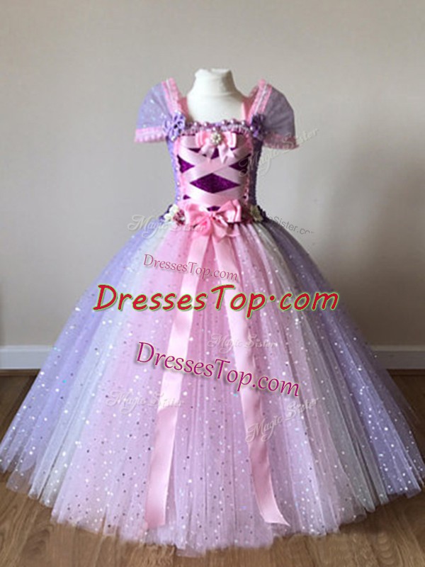 Multi-color Off The Shoulder Neckline Sequins and Bowknot Kids Pageant Dress Cap Sleeves Side Zipper