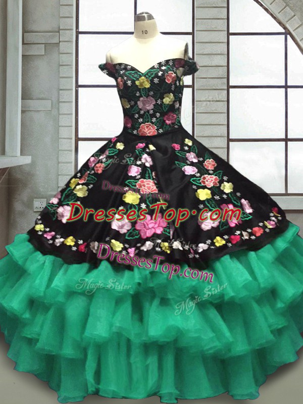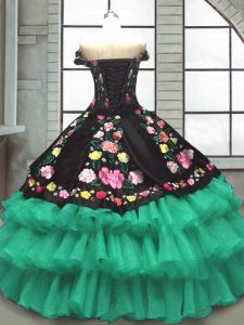 Multi-color Organza and Taffeta Lace Up 15th Birthday Dress Sleeveless Floor Length Embroidery and Ruffled Layers