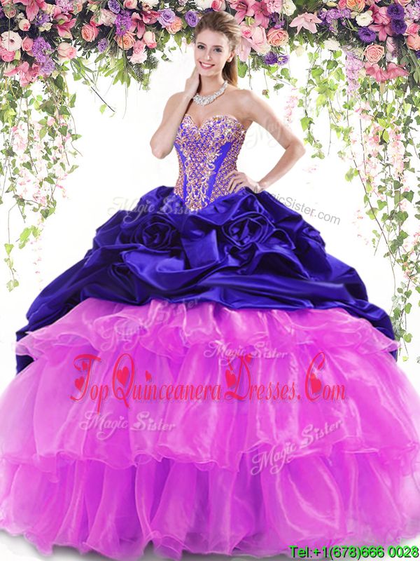Multi-color Organza and Taffeta Lace Up Sweetheart Sleeveless With Train Quinceanera Gown Brush Train Beading and Ruffled Layers and Pick Ups