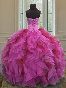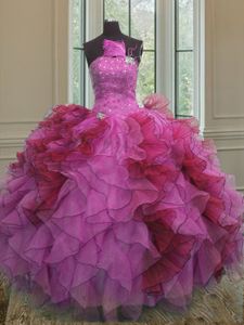 Multi-color Organza Lace Up Quinceanera Gowns Sleeveless Floor Length Ruffles and Sequins