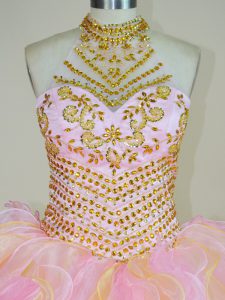 Multi-color Organza Lace Up Sweet 16 Quinceanera Dress Sleeveless Floor Length Beading and Ruffles