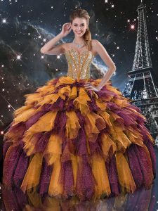 Multi-color Organza Lace Up Sweetheart Sleeveless Floor Length 15 Quinceanera Dress Beading and Ruffles and Ruffled Layers