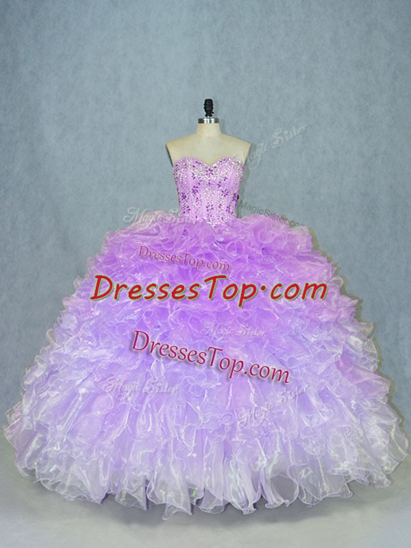 Multi-color Organza Lace Up Sweetheart Sleeveless Floor Length Ball Gown Prom Dress Beading and Ruffles