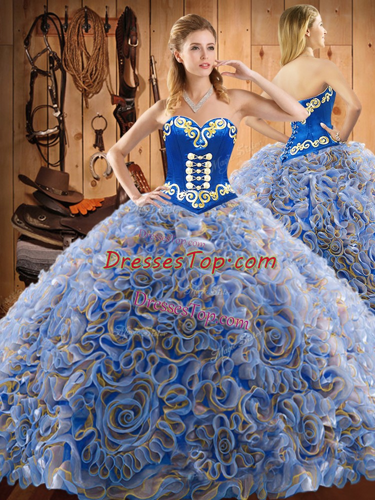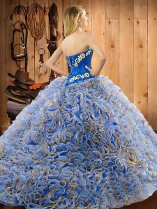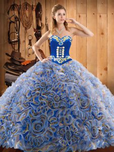 Multi-color Quinceanera Gown Satin and Fabric With Rolling Flowers Brush Train Sleeveless Embroidery