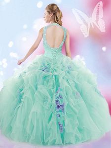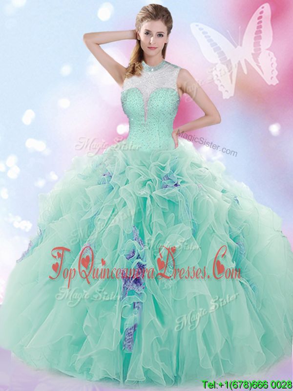 Multi-color Scoop Lace Up Beading 15 Quinceanera Dress Sleeveless