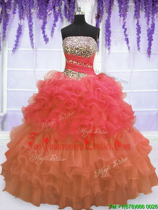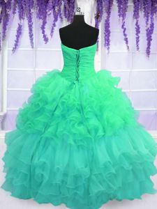 Multi-color Sleeveless Beading and Ruffled Layers and Pick Ups Floor Length 15th Birthday Dress