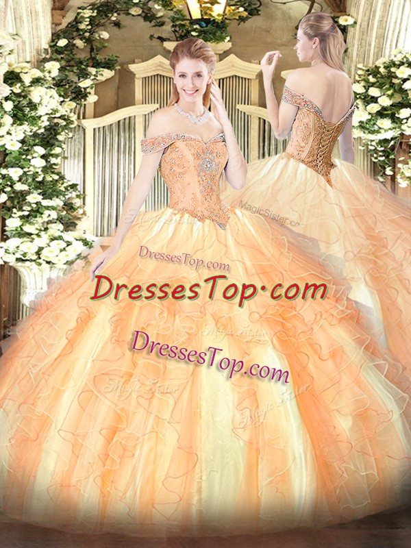 Multi-color Sleeveless Beading and Ruffles Floor Length Quinceanera Dresses