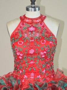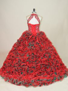 Multi-color Sleeveless Brush Train Embroidery Quince Ball Gowns