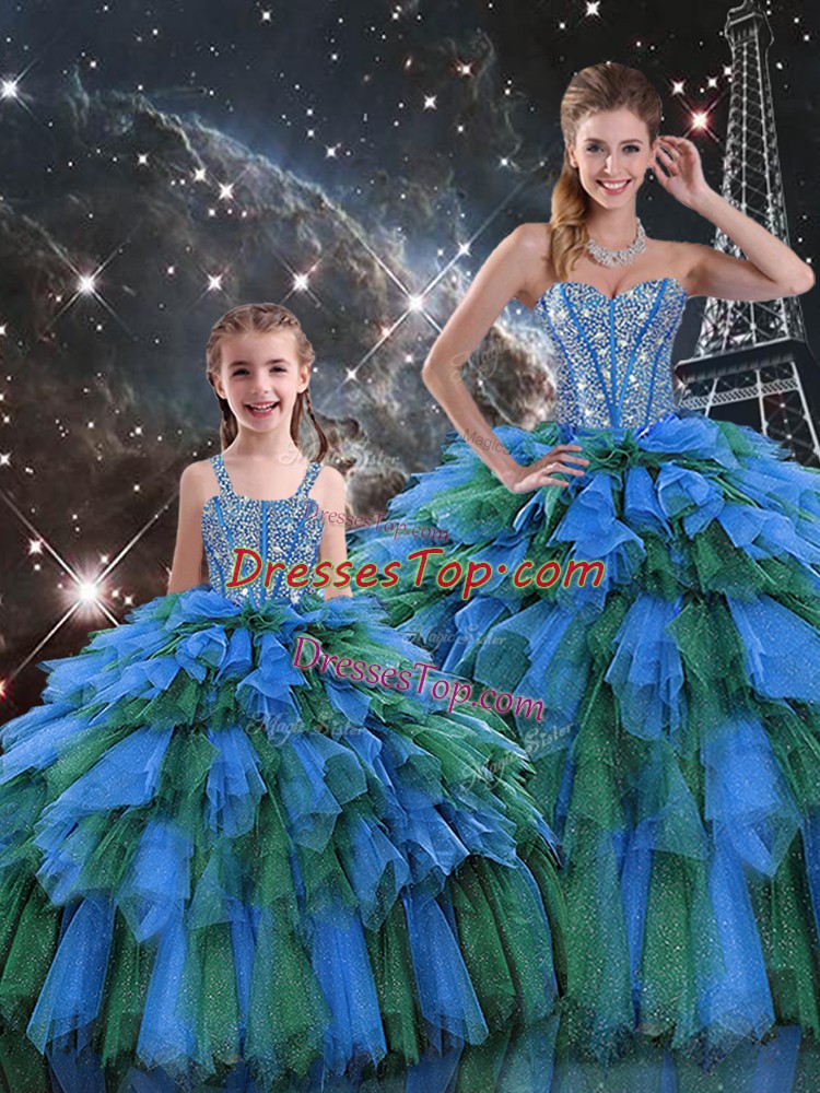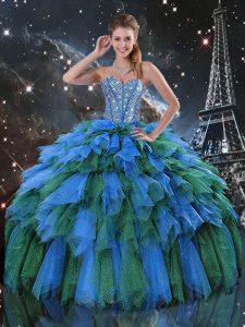 Multi-color Sleeveless Floor Length Beading and Ruffles and Ruffled Layers Lace Up 15 Quinceanera Dress