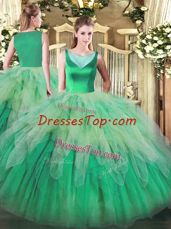 Multi-color Sleeveless Floor Length Beading and Ruffles Backless Quinceanera Dress