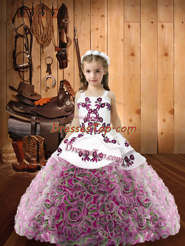 Multi-color Sleeveless Floor Length Embroidery Lace Up Little Girl Pageant Dress