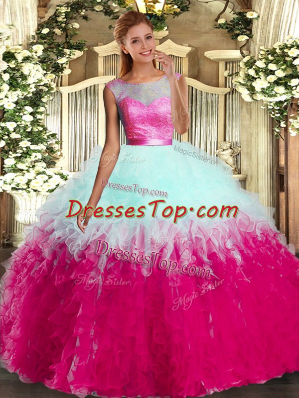 Multi-color Sleeveless Ruffles Floor Length 15 Quinceanera Dress